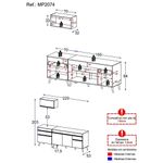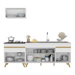 Altura: 203cm | Largura: 220cm | Profundidade: 32cm (aéreo) - 53cm (balcão com tampo)
