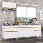 A Cozinha Compacta Veneza Multimóveis MP2074 com Armário e Balcão tem um excelente custo benefício e um amplo espaço interno. Produzida em MDP com acabamento acetinado (cerca de 20% de brilho), que garante maior durabilidade e resistência, possui corrediças metálicas (mais leveza no manuseio), pés retrô em polipropileno, que deixam o ambiente mais estiloso, puxadores em ABS e tampo em MDP 15mm com pintura de alta resistência. Esta cozinha conta com balcão com tampo removível ( com pia de 150 cm), com 1 gaveta e 3 portas e balcão para cooktop (o recorte do tampo deve ser realizado na hora da montagem conforme a medida do seu fogão) com 1 gaveta e 1 porta. Os módulos são individuais e você pode montar da maneira que se adaptar melhor ao seu ambiente. *Não acompanha pia de inox.