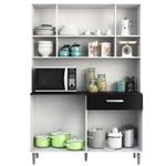 A Cozinha Compacta Poliman Móveis Gabi com 8 Portas e 1 Gaveta é ideal para quem deseja praticidade e funcionalidade em qualquer ambiente.Com design compacto e uma excelente disposição interna, traz na sua composição 8 portas sendo 2 com vidro, 1 gaveta com corrediça metálica deslizante, espaço para micro-ondas ou demais aparelhos de utilidade doméstica, prateleiras e nicho organizador decorativo dando um charme especial à peça.Cozinha com pés reguláveis fabricado em MDP que garante a qualidade que só a Poliman oferece em seus produtos.