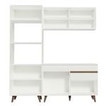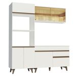 - Itens inclusos: Uma (1) Torre-quente de 70 cm com três (3) portas, sendo uma delas basculante | Um (1) Aéreo de 120 cm com duas (2) portas de correr de vidro reflex | Um (1) Balcão de 120 cm com duas (2) portas, uma (1) gaveta e tampo