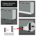 Para completar, a cozinha conta com pés reguláveis em PVC e rodapés removíveis em MDP de encaixe fácil, para facilitar na hora da limpeza.