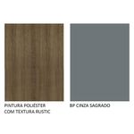 O acabamento da estrutura é em amadeirado Rustic e o das portas e frentes é cinza. É feito em Pintura Poliéster com 7 camadas que protegem o móvel dos efeitos do álcool da água e do calor.