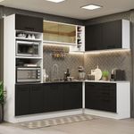 Cozinha Completa De Canto Madesa Agata 399001 Com Armário E Balcão (sem Tampo E Pia) - Branco/preto Branco/preto