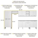 A Cozinha Completa Compacta com Armário e Balcão com Tampo 6 peças Xangai Jazz Multimóveis tem um excelente custo benefício e um amplo espaço interno. Os módulos são individuais e você pode montar da maneira que se adaptar melhor ao seu ambiente. Produzida em MDP, que garante maior durabilidade e resistência, conta com corrediças telescópicas em aço (maior durabilidade e travas de segurança para evitar acidentes), pés com regulagem de altura (permitem um perfeito nivelamento dos módulos), puxadores em ABS com acabamento cromado e tampos em MDP 15mm com pintura de alta resistência. Para deixar sua cozinha mais bonita e organizada, possui compartimento especial para utensílios mais altos e módulo aéreo com nichos. As portas embutidas proporcionam um visual de cozinha planejada.