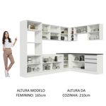 Seu formato oferece o melhor aproveitamento de canto e uma distribuição perfeita, com espaço para colocação de forno, micro-ondas, depurador e toda a parte de louça, panelas, acessórios e mantimentos.