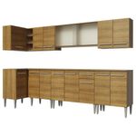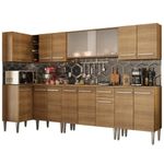 Cozinha Completa de Canto Emilly Jazz Armário Vidro MadesaA Cozinha Completa Emilly Jazz de Canto Reto da Madesa é a opção perfeita para quem dispõe de muito espaço: são quatro balcões, quatro armários aéreos e uma adega acoplada. Um grande diferencial presente nesta versão é o aéreo de 105 cm com duas portas de correr de vidro no estilo miniboreal.Muito sofisticado, traz elegância e modernidade ao ambiente. Além disso, o destaque vai para os materiais de qualidade utilizados na fabricação da cozinha, como puxadores com detalhe em alumínio e corrediças e dobradiças metálicas. Todos os módulos são separados, possibilitando a montagem conforme a necessidade do seu ambiente.Os pés são em PVC, pensados para facilitar a limpeza e com regulagem que permite nivelar pequenas imperfeições no piso. Para completar, todos os balcões acompanham tampo em MDP. O acabamento é no padrão amadeirado Rustic, em Pintura Poliéster ecológica com 7 camadas de proteção, que oferecem resistência contra os efeitos da água e do calor. Os armários aéreos e o paneleiro precisam ser fixados na parede.Especificações Técnicas:- Marca: Madesa