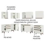 Neste modelo são quatro armários aéreos e quatro balcões, com várias gavetas e nichos, oferecendo ótimo espaço para organizar os utensílios da cozinha. Outro diferencial é que todos os balcões acompanham tampo, que podem ser removidos para colocação de pia ou cooktop.