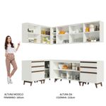 Os armários aéreos precisam ser fixados na parede. Os módulos de canto podem ser montados tanto para o lado direito quanto para o lado esquerdo, conforme a necessidade do ambiente.