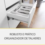 O gavetão é super ergonômico gavetão, com laterais e traseiro altos para armazenagem com segurança de utensílios e mantimentos. A gaveta conta com porta condimentos, ideal para armazenar os mais variados temperos e tê-los sempre em mãos na hora do preparo dos alimentos. A gaveta conta com organizador de talheres, que facilita a separação dos demais itens. Não é demais?