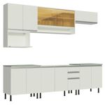 - Itens inclusos: Um armário aéreo de 80 cm com duas portas | Um nicho de 60 cm para forno | Um armário aéreo de 120 cm com duas portas de correr de vidro Reflex e um nicho | Um balcão de 120 cm com duas portas, três gavetas (não acompanha o tampo deste balcão) | Um armário aéreo de 80 cm com uma porta basculante com pistão a gás | Dois balcões de 80 cm, cada um com duas portas e tampo em MDP em pintura Mood;