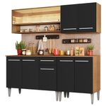Cozinha Completa Madesa Balcão e Armário Vidro Rustic/pretoA Cozinha Completa Emilly Dance da Madesa é um charme só!O espaço disponível é perfeito para deixar tudo bem organizado. São dois balcões e dois armários aéreos, todos fabricados com materiais de qualidade, como puxadores com detalhe em alumínio e corrediças e dobradiças metálicas. Além disso, os módulos são separados e podem ser montados conforme a necessidade do seu ambiente.Esta versão se destaca por contar com o aéreo de 105 cm com um nicho e duas portas de correr de vidro reflex, que podem refletir o espaço ou mostrar o interior do móvel, variando conforme a luz do ambiente. Dessa forma, sua cozinha vai ficar muita mais elegante e sofisticada.Os pés são em PVC, pensados para facilitar a limpeza e com regulagem que permite nivelar pequenas imperfeições no piso. Para completar, todos os balcões acompanham tampo em MDP.
