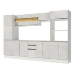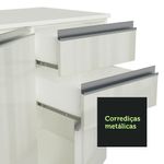 O acabamento da estrutura é branco fosco e as portas são em branco brilhante. O processo é feito em Pintura Poliéster de alta resistência e fácil limpeza, que confere beleza e praticidade.Especificações TécnicasCor: Branco