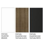 O acabamento da estrutura interna e externa é no padrão amadeirado Rustic. As portas dos aéreos são pretas. As portas dos balcões, as gavetas e as costas são brancas. Os processos são feitos em Poliéster Protetor ecológico de alta resistência, que protege o móvel dos efeitos da água, do álcool e do calor.
