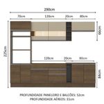 - Profundidade maior, como uma cozinha planejada, 52cm no balcão inferior e 31cm nos aéreos
