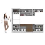 - Dimensão total do produto (AxL): 225 x 290cm | Profundidade balcões e paneleiro 52cm e aéreos 31cm