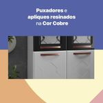 A Cozinha de Aço Compacta 3 Peças Regina Multimóveis Glass, torna único qualquer ambiente. Ela possui 05 vidros que, além de serem temperados garantindo total segurança, ainda são serigrafados com design harmônico. Os puxadores e apliques resinados na cor Cobre Fosco agregam beleza e sofisticação para essa cozinha. Composta por três modulações (paneleiro duplo, armário triplo e armário duplo baixo), tem espaço disponível de sobra para armazenar utensílios e alimentos de maneira organizada e funcional. Fabricada em aço, recebe pintura eletrostática e anticorrosiva, com acabamento brilhoso. O tratamento recebido na pintura garante resistência e durabilidade ao móvel.