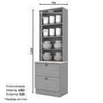 Cristaleira 2 Portas 2 Gav 72 Cm C357 Americana Cinza Calcare HennCristaleira 2 Portas e 2 Gavetas 72 cm, cozinha provençal, seu conceito é inspirado nas clássicas cozinhas estilo americano. Estrutura 100% MDF de 15mm (fundo em MDF de 3mm), possui rodapés com opção de instalação sem rodapés suspensa (ferragens para fixação na parede inclusas). Suas 2 portas de vidro equipadas com dobradiças metálicas 35mm com Amortecimento, e suas 2 gavetas com corrediças telescópicas para um deslizar suave e silencioso. Conta com 4 prateleiras cada uma suportando até 8kg. A pintura UV texturizada proporciona um acabamento sofisticado e fácil de limpar. Com tampo de 71,5 x 32,2 cm. Este móvel chegará na sua casa separado em 03 volumes.DimensõesAltura: 220,5 cm