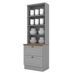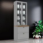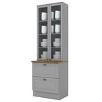 Cristaleira 2 Portas 2 Gav 72cm C357 Americana Cinza Nature HennCristaleira 2 Portas e 2 Gavetas 72 cm, cozinha provençal, seu conceito é inspirado nas clássicas cozinhas estilo americano. Estrutura 100% MDF de 15mm (fundo em MDF de 3mm), possui rodapés com opção de instalação sem rodapés suspensa (ferragens para fixação na parede inclusas). Suas 2 portas de vidro equipadas com dobradiças metálicas 35mm com Amortecimento, e suas 2 gavetas com corrediças telescópicas para um deslizar suave e silencioso. Conta com 4 prateleiras cada uma suportando até 8kg. A pintura UV texturizada proporciona um acabamento sofisticado e fácil de limpar. Com tampo de 71,5 x 32,2 cm. Este móvel chegará na sua casa separado em 03 volumes.DimensõesAltura: 220,5 cm