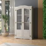 Cristaleira Em Madeira 104 X 186 Cm 2 Portas De Vidro Pátina Branca Elliottiis