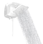 DUCHA ELETRÔNICA FUTURA 7500W 220V LORENZETTIA Ducha Eletrônica Futura da Lorenzetti é um chuveiro que combina design moderno, alta potência e tecnologia para proporcionar uma experiência de banho diferenciada e com total controle da temperatura. Sua forma quadrada e compacta, além da haste de controle, a tornam uma escolha popular e elegante para banheiros contemporâneos.CARACTERÍSTICAS E ESPECIFICAÇÕESPotência e Voltagem: Possui 7500W de potência e funciona em 220V, garantindo um aquecimento rápido e eficiente da água, mesmo em dias mais frios.Controle Eletrônico: O sistema eletrônico permite um ajuste gradual e preciso da temperatura, que pode ser feito através de uma haste prolongadora, mantendo o controle ao alcance das mãos.Design e Acabamento: O design com linhas quadradas e ultrafinas adiciona um toque moderno e minimalista ao banheiro. A ducha vem na cor branca, que é um clássico.Tecnologia Loren Ultra: Conta com a exclusiva resistência Loren Ultra, a primeira resistência plana do mercado, que oferece alta performance e longa duração. A troca é feita de forma rápida e segura, através de um cartucho exclusivo.Pressão de Água: Funciona com pressão de 1 m.c.a. (metro de coluna de água) a 40 m.c.a.Segurança: É compatível com o dispositivo de proteção DR (Dispositivo Diferencial Residual), que protege contra choques elétricos.Instalação: A instalação é simples e não exige grandes obras. A ducha acompanha o kit de fixação, com parafusos, buchas e manual de instruções.PESO E MEDIDASPeso do Produto: O chuveiro pesa aproximadamente 1,1 kg.Dimensões da Embalagem: As dimensões da caixa são aproximadamente:Altura: 23 cmLargura: 13 cmProfundidade: 26 cm