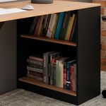 Escrivaninha Mesa Escritorio 2 Prateleiras Me4182 Amendoa Preto Tecno Mobili Amendoa Preto