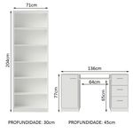 Medidas totais da estante: 204 cm de altura x 71 cm largura x 30 cm de profundidade.