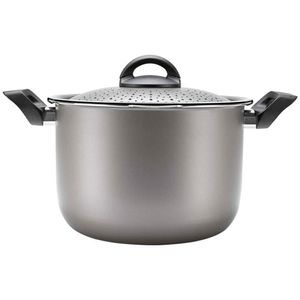 A praticidade e segurança de preparar o macarrão na caçarola e escorrer diretamente na tampa. A tampa possui uma trava de segurança, é só fechar e escorrer a massa. A Espagueteira Brinox, que tem capacidade para até 5,5L e é de alumínio com interior antiaderente – que faz com que seja muito mais fácil de limpar e deixa o preparo dos alimentos com menos óleo. Uma panela especialista no que faz.