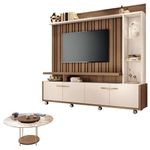 Estante Home Theater Titan Off White Castanho e Mesa de Centro sky com Tampo de Vidro Castanho - HB Móveis