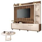 Estante Home Theater Titan Off White Castanho e Mesa de Centro sky com Tampo de Vidro Off White - HB Móveis