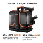 Sistema de Tanques Separados: O tanque de 1,6L para água limpa oferece maior autonomia, enquanto o tanque de 800ml facilita o descarte da água suja.