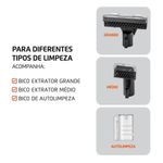 Para Diferentes Tipos de Limpeza: Inclui bico extrator grande, bico extrator médio e bico de autolimpeza para higienizar a mangueira.