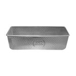 Forma para pão de forma estampada em alumínio, com tampa e laterais frisadas para facilitar o desenformar.