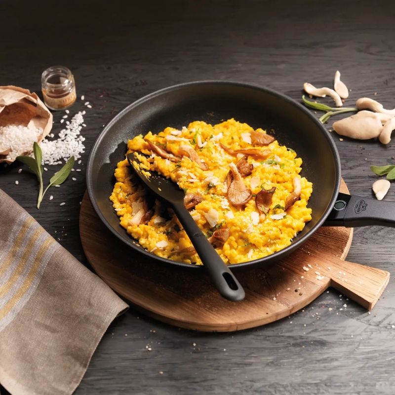 Frigideira em alumínio com revestimento, Avola Keravis Extreme, 20 cm Frigideira, grelha e wok da linha Avola da BALLARINI - O revestimento antiaderente KERAVIS EXTREME de 3 camadas reforçado com partículas cerâmicas garante excelente resistência a arranhões e à abrasão. Testado para PFOA, níquel e metais pesados. O cabo pode ser utilizado enquanto se cozinha com total segurança e sem a necessidade de pegadores. Foi desenhado pelo Studio Matteo Thun & Antonio Rodriguez e está equipado com o patenteado THERMOPOINT Energy Saving e Anti-Thermal Shock: quando o indicador está VERMELHO significa que a panela atingiu a temperatura ideal e está pronta para: você pode diminuir o fogo e assim economizar energia. Ao terminar de cozinhar, aguarde o VERDE: assim você poderá tocar no seu utensílio de cozinha sem risco de queimaduras e também saberá que chegou o momento certo de lavá-lo sem causar choque térmico que pode danificar o revestimento antiaderente, por isso vai durar mais tempo. A base de indução patenteada RADIANT para máxima eficiência térmica oferece excelente estabilidade e torna este artigo adequado para todas as fontes de calor. A borda é reforçada para maior resistência a choques e quedas e também é à prova de gotejamento. Graças ao antiaderente você poderá cozinhar de forma SAUDÁVEL com poucos óleos ou gorduras. O revestimento externo possui alta resistência térmica, proporcionando longa vida estética ao produto. A limpeza também é muito simples: pode ir à máquina de lavar louça, mas também pode ser facilmente lavada à mão. A linha AVOLA é ideal para todas as preparações. Seguindo as instruções de uso do manual, é garantida uma excelente durabilidade. Produto fabricado na Itália. BALLARINI LOVE FOR PLANET - NOSSAS ESCOLHAS DIÁRIAS PARA O MEIO AMBIENTE E PARA AS PESSOAS: artigos em alumínio reciclado e reciclável, revestimentos internos aplicados por pulverização com produtos à base de água, antiaderentes testados para PFOA, NÍQUEL e METAIS PESADOS, utilização de energias renováveis, Inovações patenteadas para otimizar resultados e consumo, empresa com certificação ambiental ISO 14001. - Especificações: • Material: Aluminio • Tamanho: 24cm