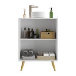 O Gabinete Banheiro 2 Portas Retrô 63cm Multimóveis é produzido em MDP com acabamento acetinado (cerca de 20% de brilho), que garante maior durabilidade, facilidade na limpeza, além de um acabamento superior. Com 2 portas, possui um excelente espaço interno para organizar itens de higiene, toalhas e demais objetos (a prateleira interna suporta 8 Kg e o tampo 9 Kg). Os pés retrô, em polipropileno, dão um charme especial ao móvel deixando-o com um visual leve e permitindo você compor um ambiente com ar vintage e moderno ao mesmo tempo. Uma ótima opção para deixar seu banheiro bonito, prático e organizado. Não acompanha torneira e cuba.