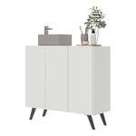 O Gabinete Banheiro 3 Portas Retrô 90cm Multimóveis é produzido em MDP com acabamento acetinado (cerca de 20% de brilho), que garante maior durabilidade, facilidade na limpeza, além de um acabamento superior. Com 3 portas, possui um excelente espaço interno para organizar itens de higiene, toalhas e demais objetos (as prateleiras internas suportam 2 e 5 Kg e o tampo 7 Kg). Os pés retrô, em polipropileno, dão um charme especial ao móvel deixando-o com um visual leve e permitindo você compor um ambiente com ar vintage e moderno ao mesmo tempo. Uma ótima opção para deixar seu banheiro bonito, prático e organizado. Não acompanha torneira e cuba.