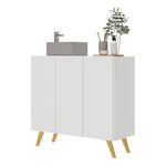 O Gabinete Banheiro 3 Portas Retrô 90cm Multimóveis é produzido em MDP com acabamento acetinado (cerca de 20% de brilho), que garante maior durabilidade, facilidade na limpeza, além de um acabamento superior. Com 3 portas, possui um excelente espaço interno para organizar itens de higiene, toalhas e demais objetos (as prateleiras internas suportam 2 e 5 Kg e o tampo 7 Kg). Os pés retrô, em polipropileno, dão um charme especial ao móvel deixando-o com um visual leve e permitindo você compor um ambiente com ar vintage e moderno ao mesmo tempo. Uma ótima opção para deixar seu banheiro bonito, prático e organizado. Não acompanha torneira e cuba.