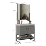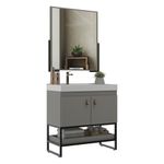 O Gabinete Banheiro com Cuba e Espelheira 79cm Multimóveis CR10108 é perfeito para dar um toque de sofisticação ao seu espaço, além de oferecer praticidade no armazenamento dos seus itens de higiene pessoal. Produzido em chapa de MDF com 15mm de espessura e acabamento em BP, garante resistência, durabilidade e beleza. O balcão conta com 2 portas com puxadores em couro e uma prateleira interna para organizar seus objetos. Já o tampo esculpido em marmorite resinado adiciona um charme extra ao conjunto. A espelheira possui um espelho lapidado de 3mm que reflete sua imagem com nitidez, e os tubos metálicos conferem modernidade ao design do conjunto.