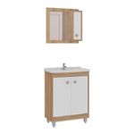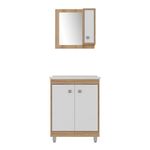 O Gabinete Banheiro com Cuba e Espelheira 60cm Multimóveis é produzido em MDP 15mm com acabamento semibrilho, que garante maior durabilidade e facilidade de limpeza. A espelheira possui 1 porta com prateleira interna (suporta até 3kg). O balcão com cuba esculpida em marmorite sintético (já vai com furação para instalação da torneira) proporciona mais requinte ao seu banheiro. Com 2 portas (puxadores em ABS) e prateleiras internas possui amplo espaço para organização de toalhas, itens pessoais e de higiene. Os pés com regulagem de altura permitem um perfeito nivelamento do móvel.