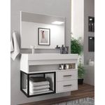 O Gabinete Banheiro com Espelheira 80cm Multimóveis é produzido em MDF (15mm) com acabamento em BP que garante maior durabilidade e resistência, além de facilitar a limpeza. O balcão com cuba esculpida em marmorite resinado (tampo já vai com furação para instalação da torneira) possui 2 gavetas com corrediças telescópicas, puxadores em alumínio e amplo espaço para organização de toalhas, itens pessoais e de higiene. O detalhe aramado deixa o móvel moderno e proporciona mais requinte ao seu banheiro. A espelheira possui espelho 3mm de vidro (o que evita que a imagem fique distorcida) e lapidado, ou seja, passa por um processo para que as bordas não fiquem cortantes, o que garante maior segurança. Uma opção prática para deixar seu banheiro bonito e organizado.