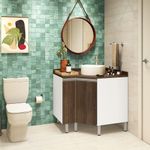 Gabinete para Banheiro sem Furação Suprema Branco com Nogueira Dourado Luciane Móveis