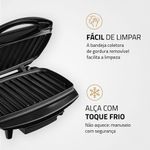 Com o Max Grill da Mondial você poderá grelhar carnes, aves, frutos do mar e vegetais, além de preparar, com rapidez, sanduíches com diversos tipos de pães: de fôrma, francês, italiano, bisnagas, entre outros.