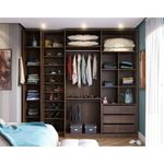 Guarda Roupa Closet Sem Portas 3 Peças Com Sapateira, 3 Gavetas, 2 Cabideiros Prime Luciane Móveis Nogueira Dourado