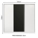 Medidas totais do armário: 218 cm de altura x 231 cm de largura x 55 cm de profundidade.