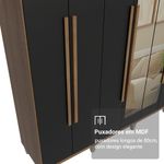 O acabamento de alta resistência garante durabilidade por muito mais tempo. A estrutura e os puxadores em tom amadeirado Rustic, combinados com as portas pretas, criam um design moderno e elegante. Os puxadores de 80 cm, fabricados em MDF, destacam-se pelo design alongado, enquanto os pés elevam o móvel, facilitando a limpeza e conferindo ainda mais estilo.