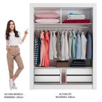 Medidas totais do guarda-roupa: 205 cm de altura x 117 cm de largura x 51 cm de profundidade.
