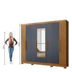 Guarda Roupas Casal Com Espelho Ripado 8 Portas 4 Gavetas Diamante Moval Madeirado / Cinza