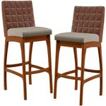 Entregando muita excelência, o Kit 02 Banquetas Altas Cozinha Sala Jantar Fixa Mila B04 Couríssimo Marrom Linho Bege - Lyam Decor é o complemento que faltava para deixar sua casa ainda mais extraordinária. Seu encosto com costura em padrão quadriculado e assento estofados, centralizam em si uma graciosidade estonteante, sem perder todo o conforto. A estrutura em madeira, na cor nozes, também é digna de notoriedade, por imprimir bastante personalidade a sua decoração. Vale ressaltar ainda, o apoio para os pés que garante maior segurança à banqueta.