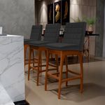 Entregando muita excelência, o Kit 02 Banquetas Altas Para Cozinha Sala De Jantar Fixa Mila B04 Facto Preto Fosco - Lyam Decor é o complemento que faltava para deixar sua casa ainda mais extraordinária. Seu encosto com costura em padrão quadriculado e assento estofados, centralizam em si uma graciosidade estonteante, sem perder todo o seu conforto. A estrutura em madeira, na cor nozes, também é digna de notoriedade, por imprimir bastante personalidade a sua decoração. Vale ressaltar ainda, o apoio para os pés que garante maior segurança à mesma.