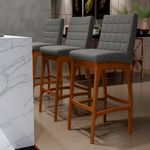 Entregando muita excelência, o Kit 02 Banquetas Altas Para Cozinha Sala de Jantar Fixa Mila B04 Linho Cinza Escuro - Lyam Decor é o complemento que faltava para deixar sua casa ainda mais extraordinária. Seu encosto com costura em padrão quadriculado e assento estofados, centralizam em si uma graciosidade estonteante, sem perder todo o seu conforto. A estrutura em madeira, na cor nozes, também é digna de notoriedade, por imprimir bastante personalidade a sua decoração. Vale ressaltar ainda, o apoio para os pés que garante maior segurança à mesma.
