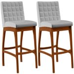 Entregando muita excelência, o Kit 02 Banquetas Altas Para Cozinha Sala de Jantar Fixa Mila L02 Facto Cinza Metalizado - Lyam Decor é o complemento que faltava para deixar sua casa ainda mais extraordinária. Seu encosto com costura em padrão quadriculado e assento estofados, centralizam em si uma graciosidade estonteante, sem perder todo o seu conforto. A estrutura em madeira, na cor nozes, também é digna de notoriedade, por imprimir bastante personalidade a sua decoração. Vale ressaltar ainda, o apoio para os pés que garante maior segurança à mesma.